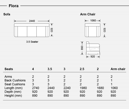 | Seat Cushion : | Stamina Foam, Enduro Foam, Luxura Foam, Feather Fibre Cushion and Enduro Foam |